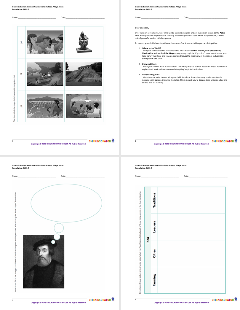 Grade 1: Aztecs, Maya, Incas Worksheets – Foundation Skills 3