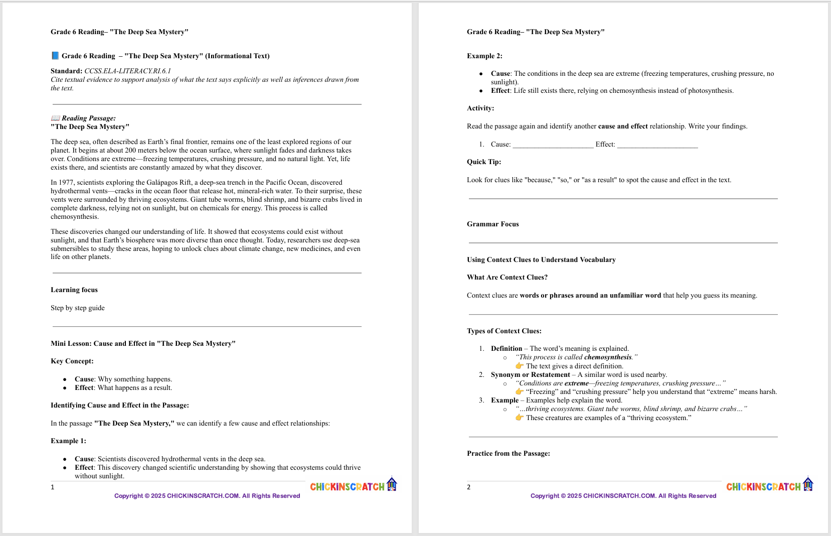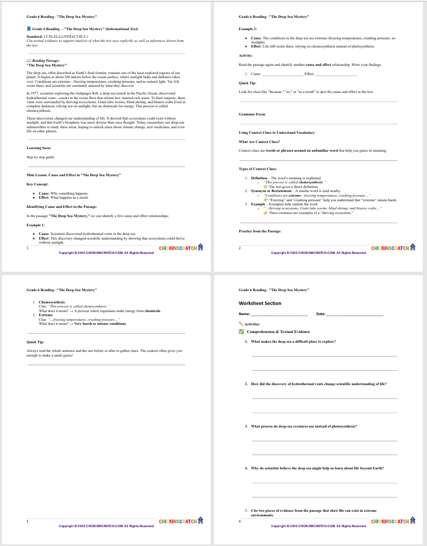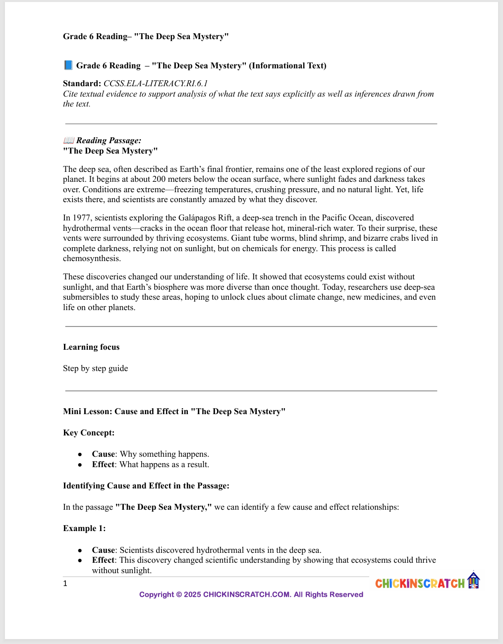 Grade 6 Reading: “The Deep Sea Mystery” (Informational Text)