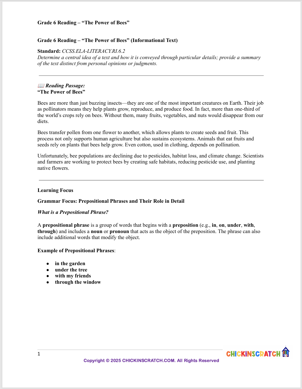 Grade 6 Reading: “The Power of Bees” (Informational Text)