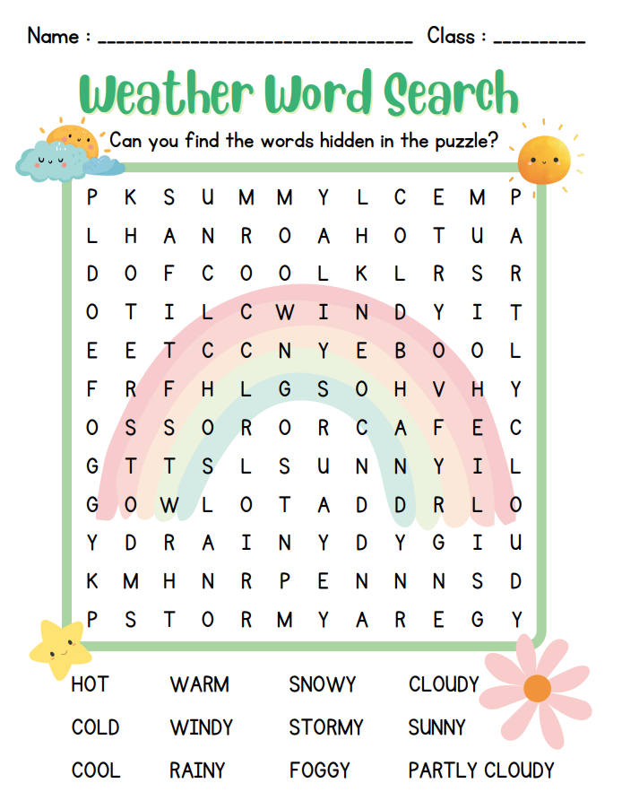 Weather Word Search Worksheet – 1 Page ⛅🔍